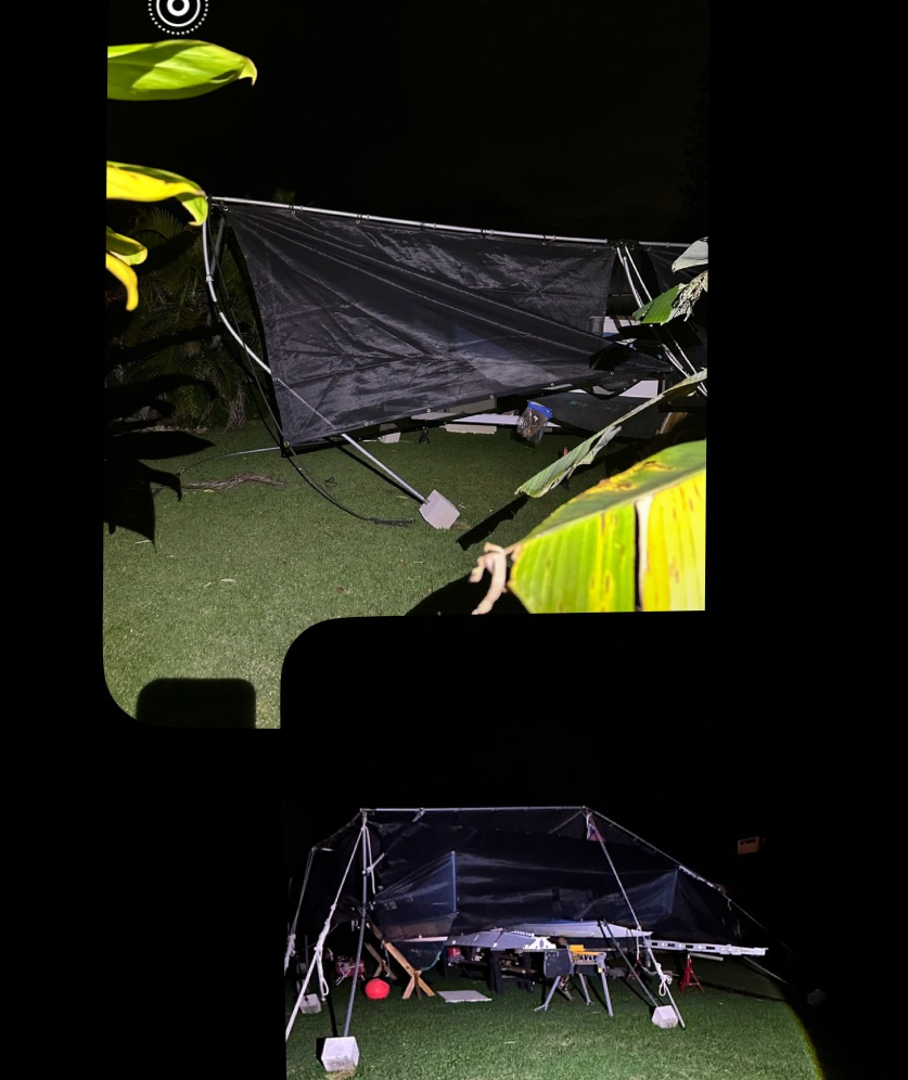 Couple nights ago… our ʻAʻĀ hale took a beating from the unusual and string winds coming through the Koʻolou mountain range. You may have seen ‘em on our story but I wanted to share here & let you know that our little wa’a is okay! Though, her new hale (which was a generous gift from uncle Curtis, put up by all of us with love) will need to be cut up, broken down, and made anew. We had staked her down with heavy duty stakes and ropes and concrete blocks and she still get all bent up. If you have any tips or suggestions, let us know!